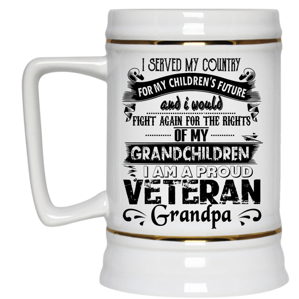 Gift For Grandpa Beer Stein 22oz, I Am A Proud Veteran Grandpa Beer Mug