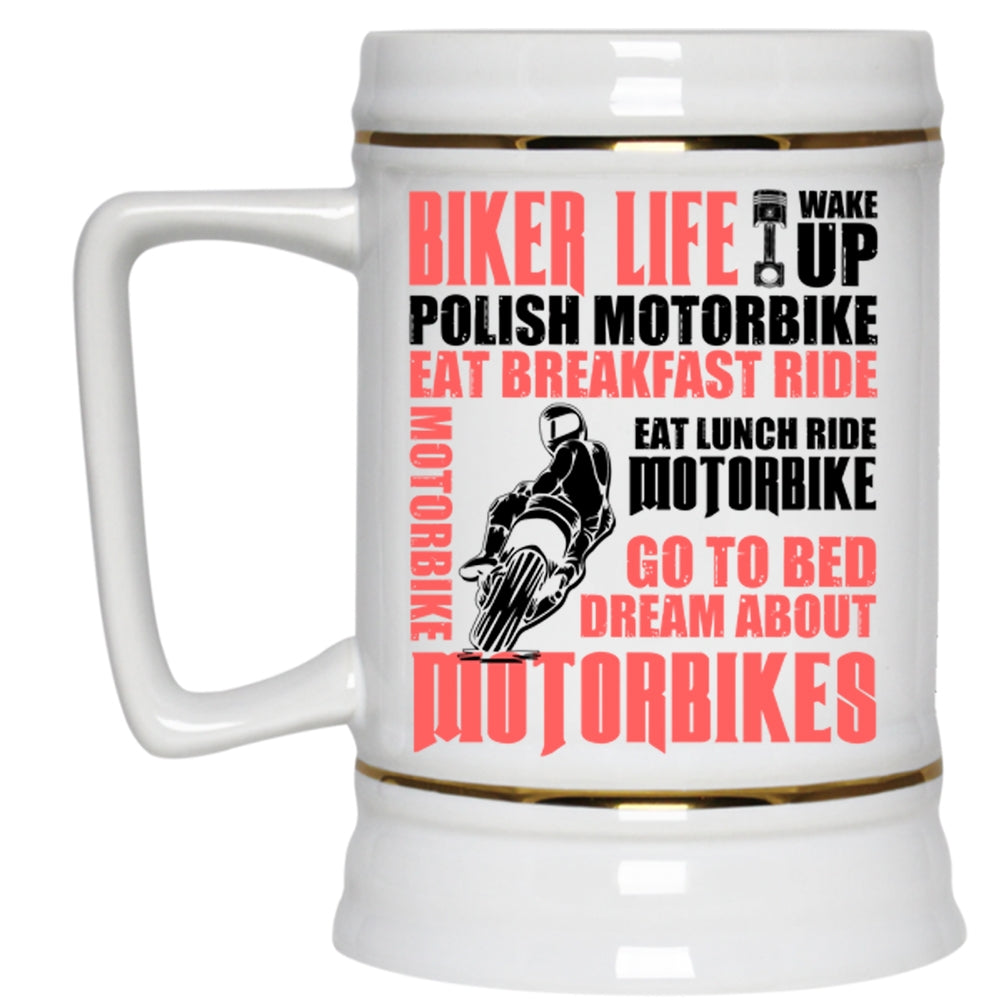 Go To Bed Dream About Motorbikes Beer Stein 22oz, Biker Life Beer Mug