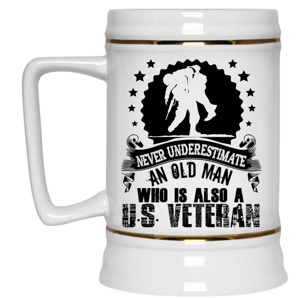 Grandpas Beer Stein 22oz, An Old Man Who Is Also A U.S Veteran Beer Mug