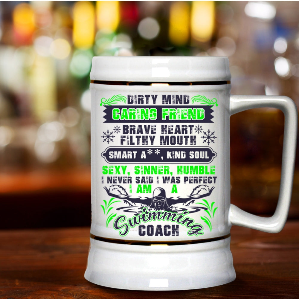 I Am A Swimming Coach Beer Stein 22oz, I Never Said I Was Perfect Beer Mug