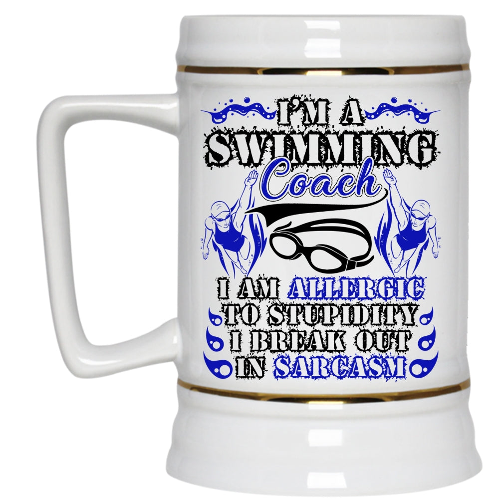 I Am Allergic To Stupidity Beer Stein 22oz, I'm A Swimming Coach Beer Mug