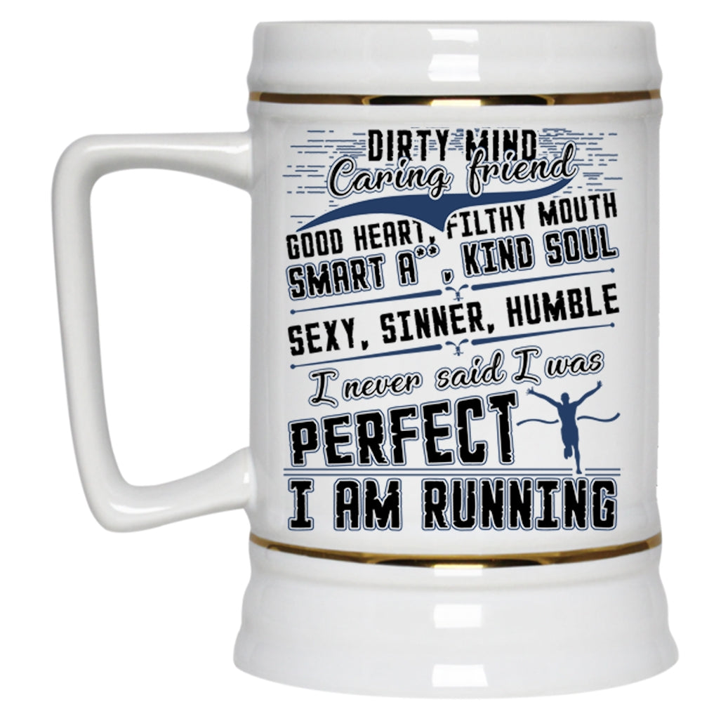 I Am Running Beer Stein 22oz, I Never Said I Was Perfect Beer Mug