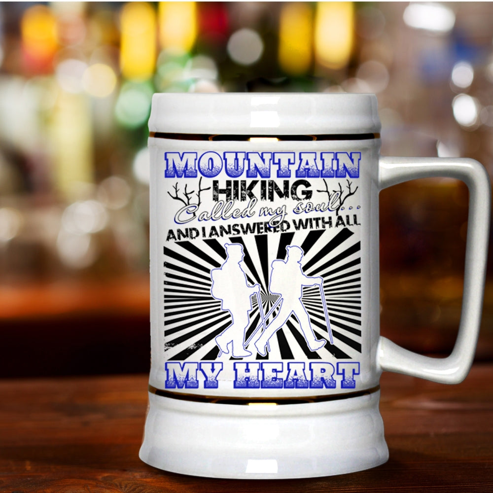 I Answered With All My Heart Beer Stein 22oz, Mountain Hiking Called My Soul Beer Mug