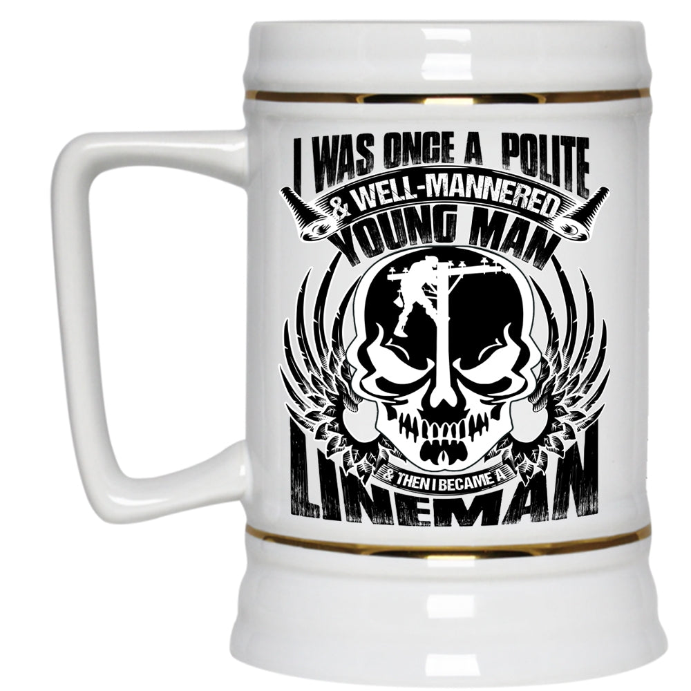 I Became A Lineman Beer Stein 22oz, I Was Once A Polite And Young Man Beer Mug
