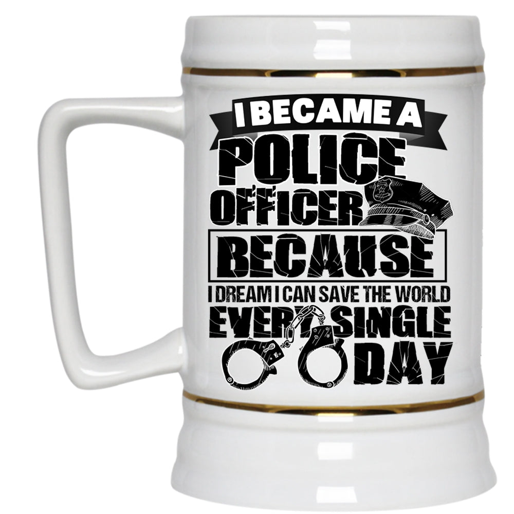 I Can Save The World Every Single Day Beer Stein 22oz, I Became A Police Officer Beer Mug