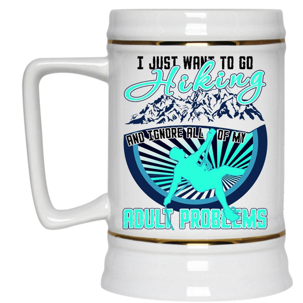 I Love Hiking Beer Stein 22oz, I Just Want To Go Hiking Beer Mug