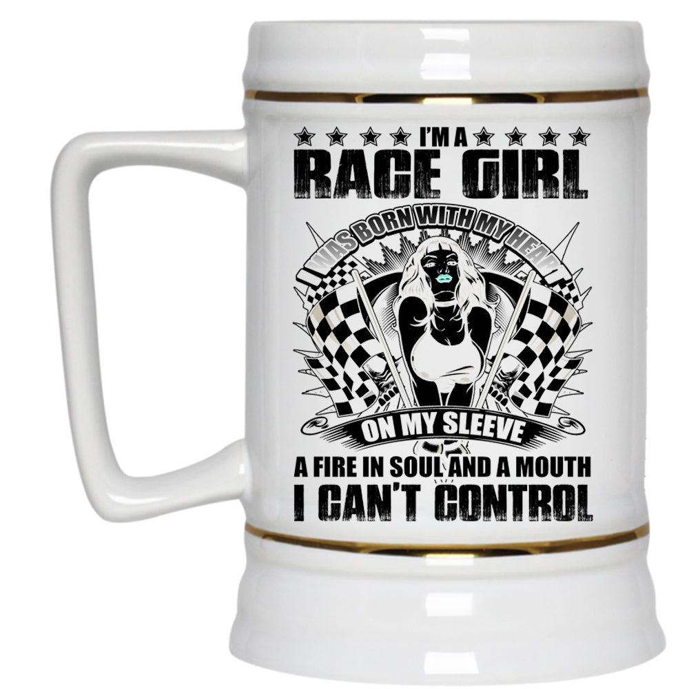 I Was Born With My Heart On My Sleeve Beer Stein 22oz, I'm A Race Girl Beer Mug