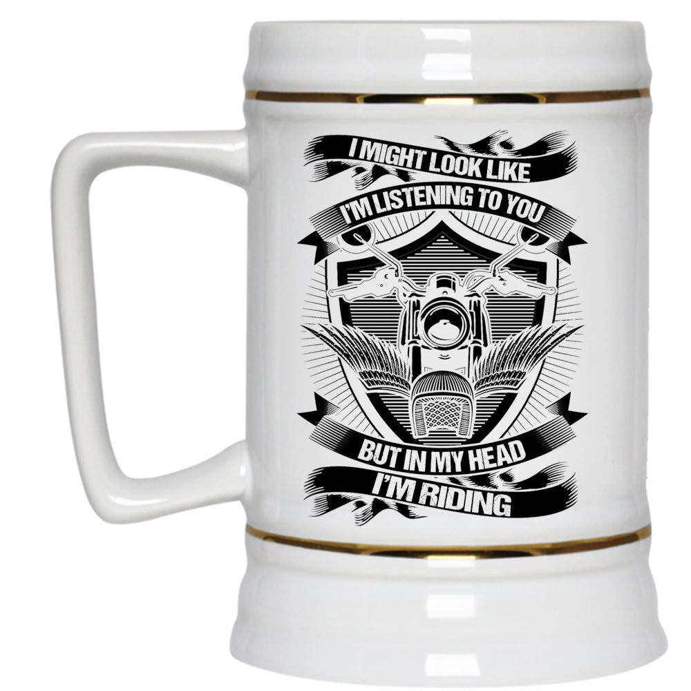 In My Head I'm Riding Beer Stein 22oz, I Might Look Like I'm Listening To You Beer Mug