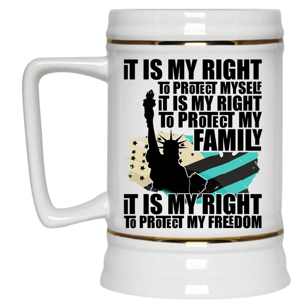 It Is My Right To Protect My Freedom Beer Stein 22oz, It Is My Right To Protect My Family Beer Mug