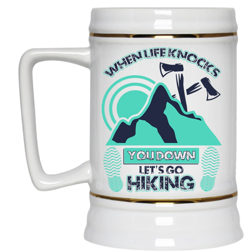 Let's Go Hiking Beer Stein 22oz, When Life Knocks You Down Beer Mug