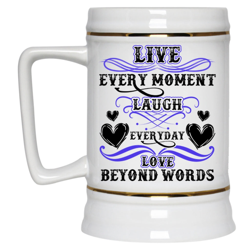 Love Beyond Words Beer Stein 22oz, Live Every Moment Laugh Everyday Beer Mug