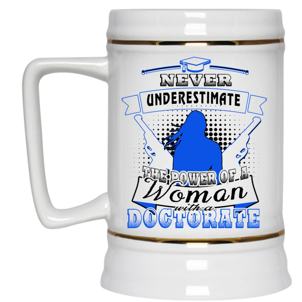 Mom Beer Stein 22oz, The Power Of A Woman With A Doctorate Beer Mug