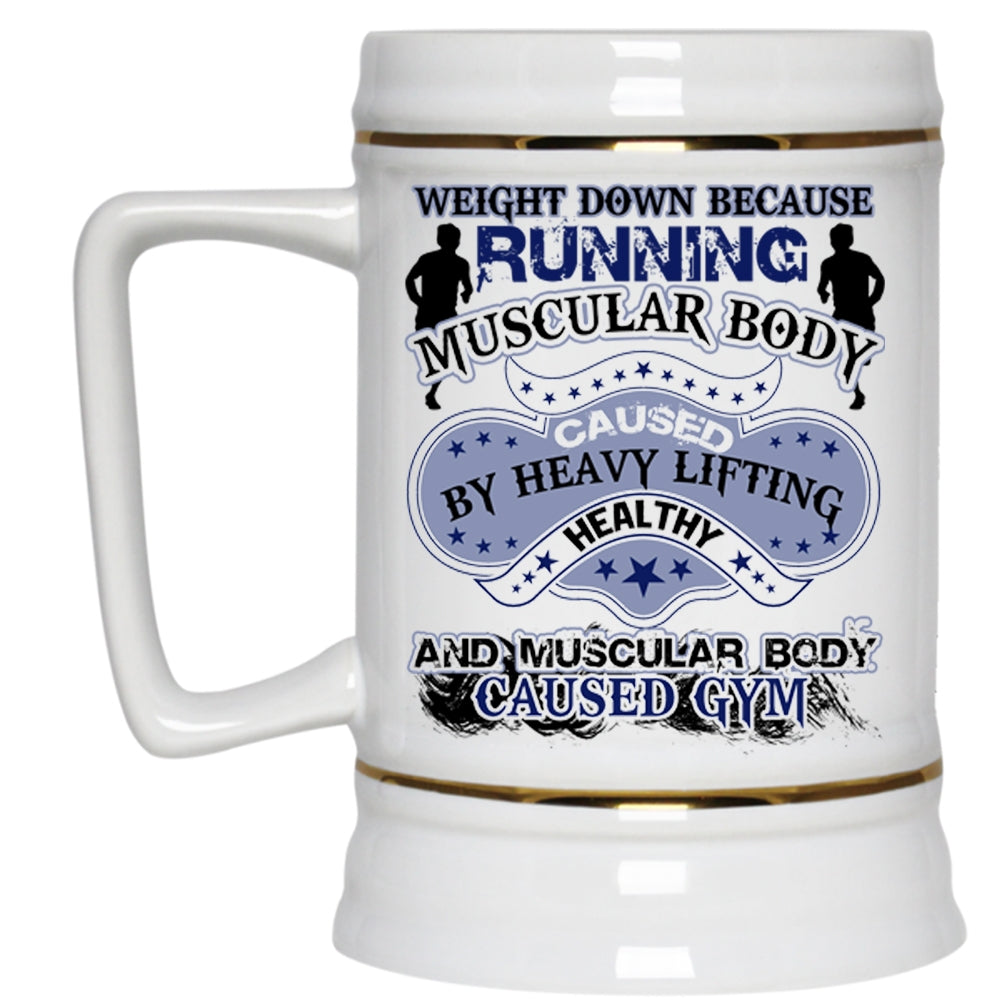 Muscular Body Caused Gym Beer Stein 22oz, Running Muscular Body Beer Mug