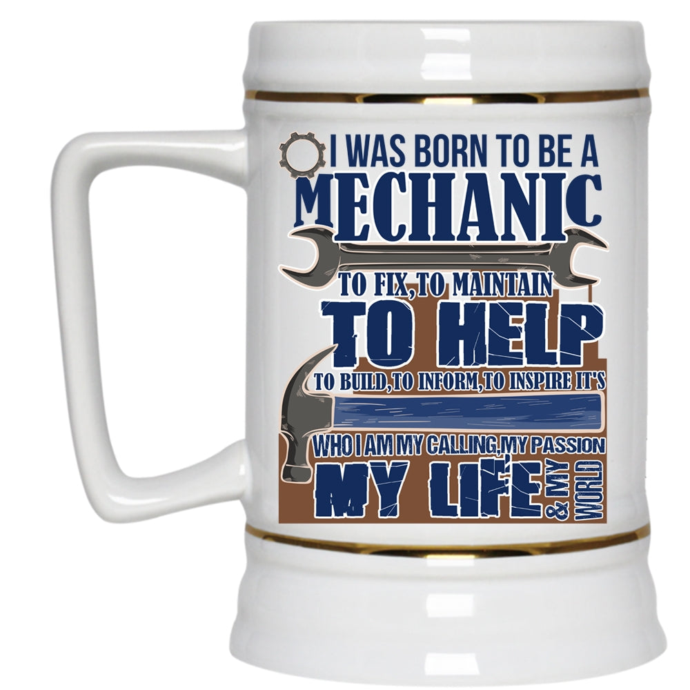My Calling My Passion My Life Beer Stein 22oz, I Was Born To Be A Mechanic Beer Mug