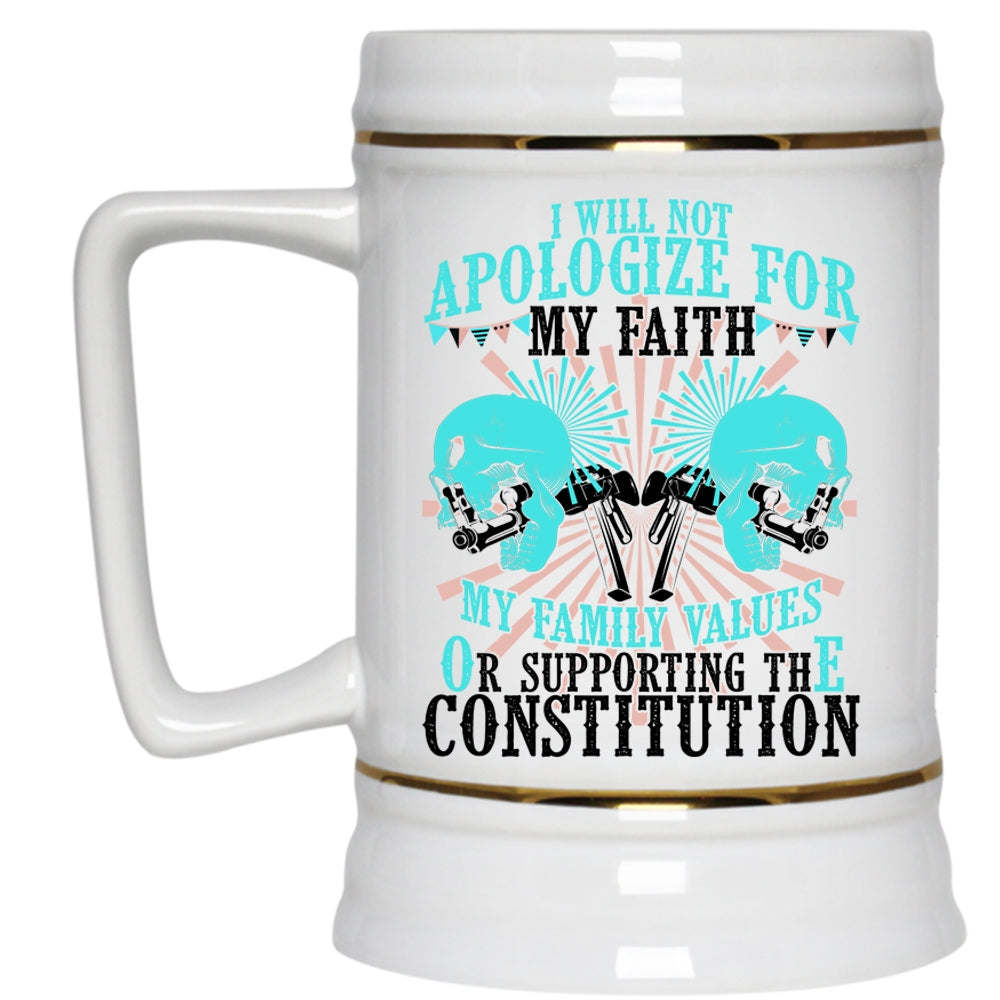 My Family Values Beer Stein 22oz, I will Not Apologize for My faith Beer Mug