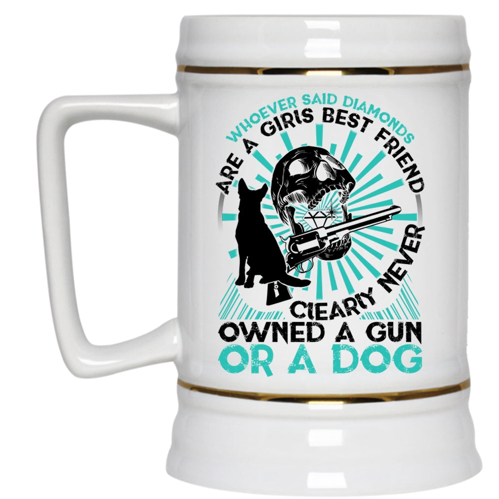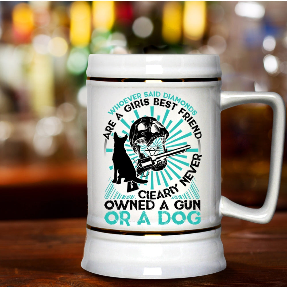 Never Owned A Gun Or A Dog Beer Stein 22oz, Diamonds Are A Girls Best Friend Beer Mug
