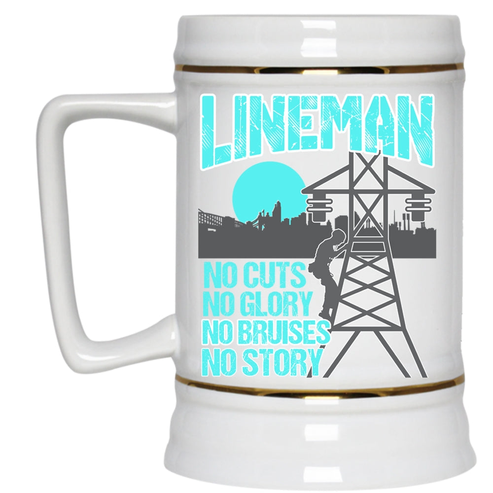 No Cuts No Glory No Bruises No Story Beer Stein 22oz, Lineman Beer Mug