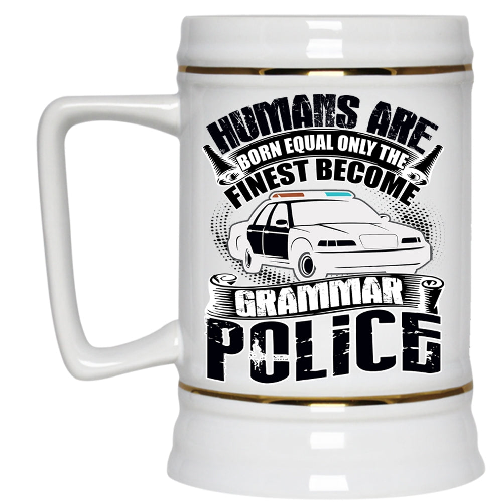 Only The Finest Become Grammar Police Beer Stein 22oz, Humans Are Born Equal Beer Mug