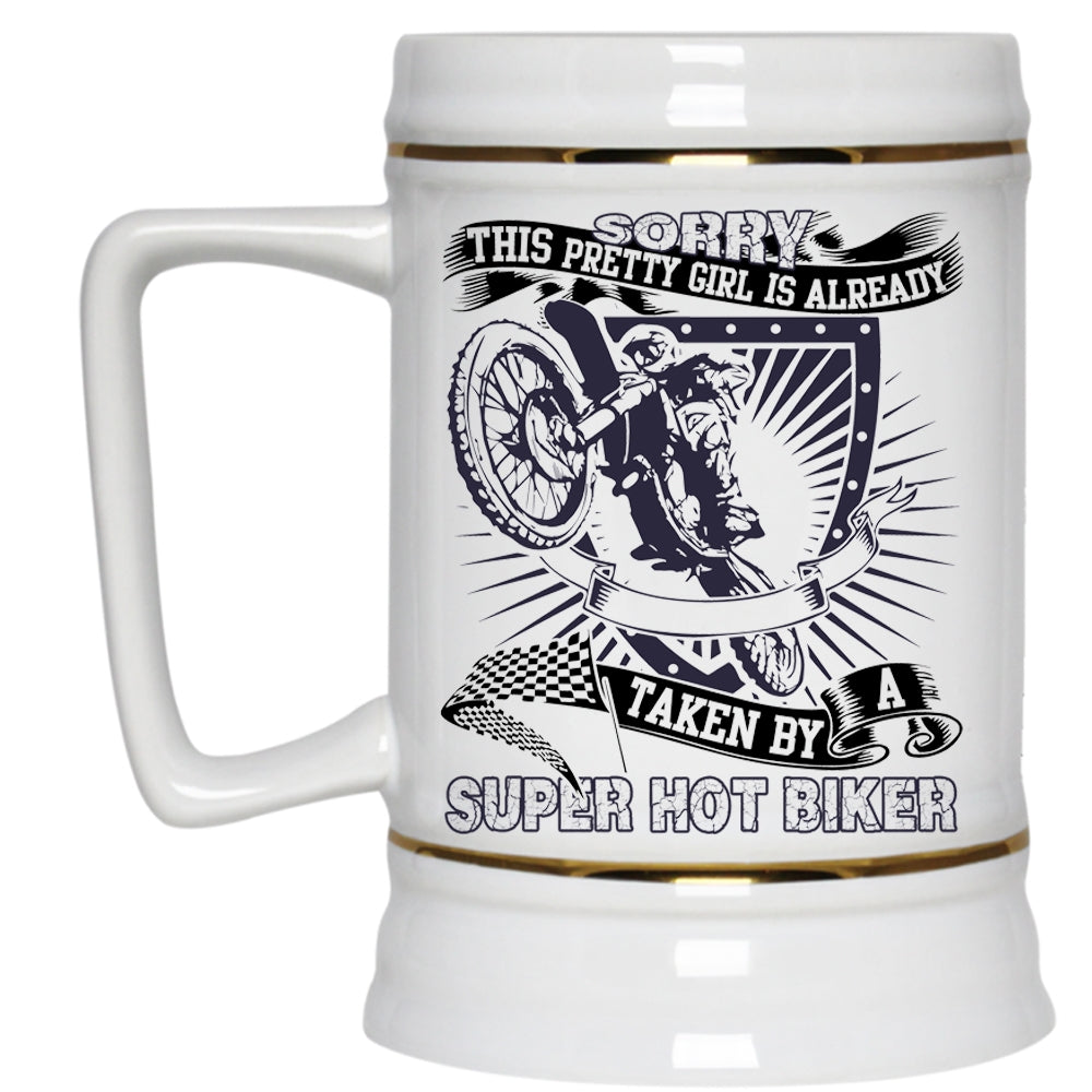 Pretty Girls Beer Stein 22oz, This Pretty Girl Is Already Taken By A Biker Beer Mug