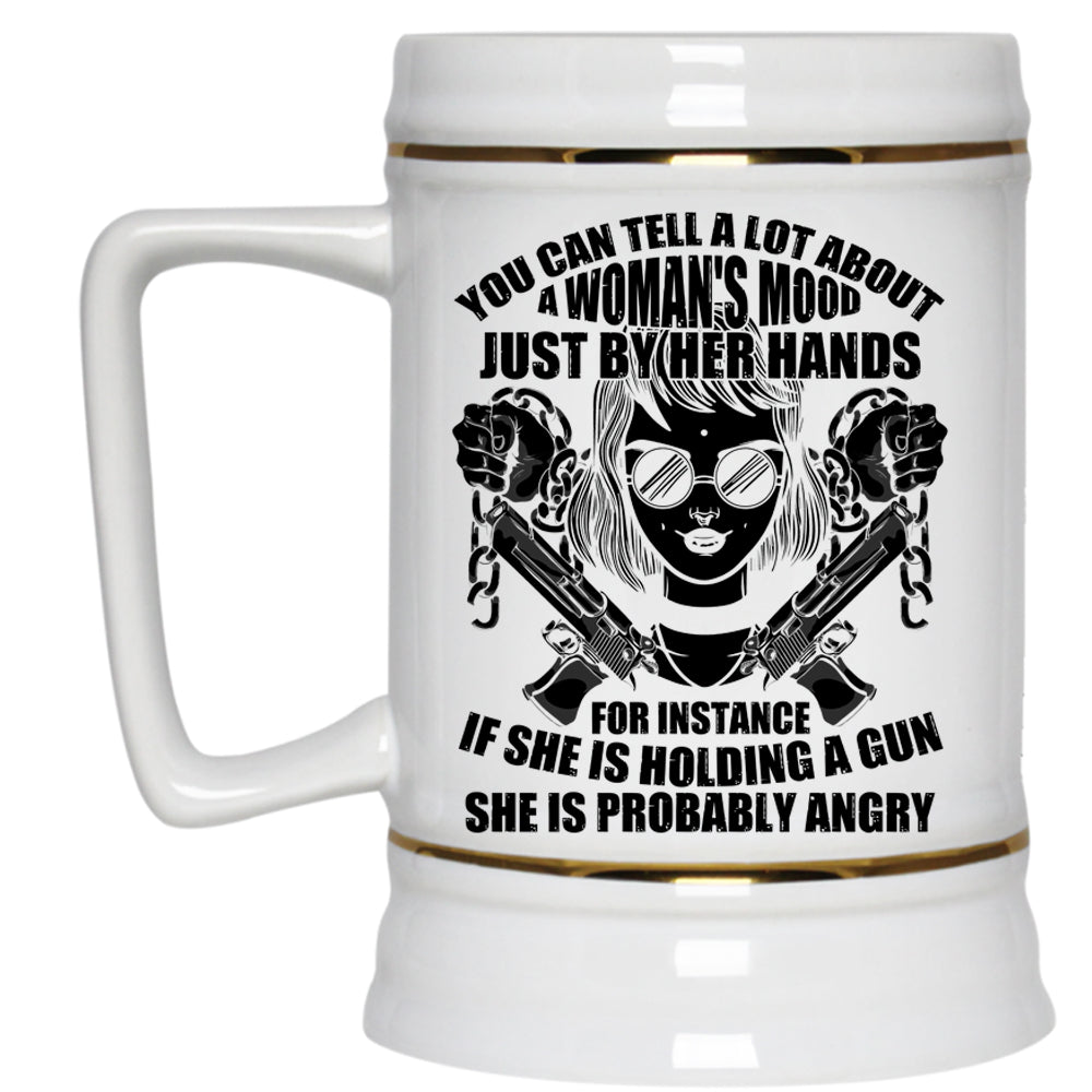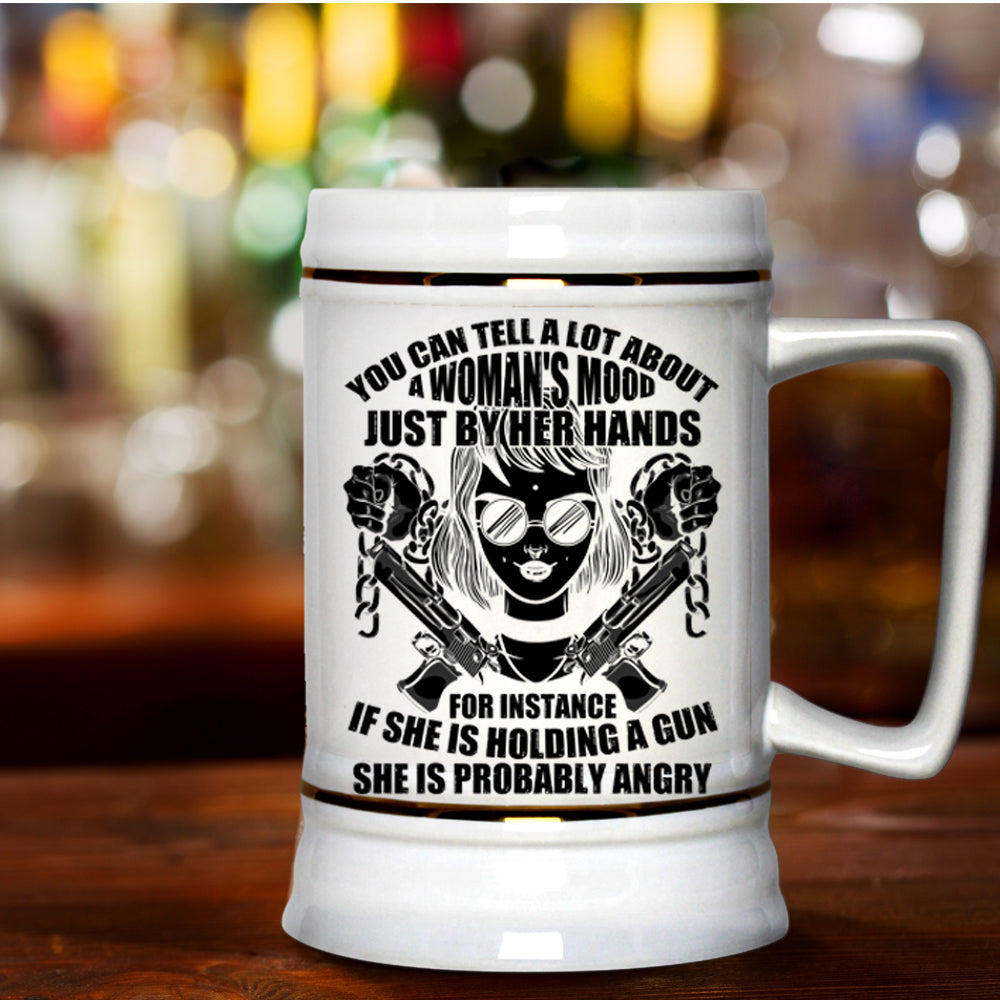 She Is Holding A Gun Beer Stein 22oz, You Can Tell A Lot About A Woman's Mood Beer Mug