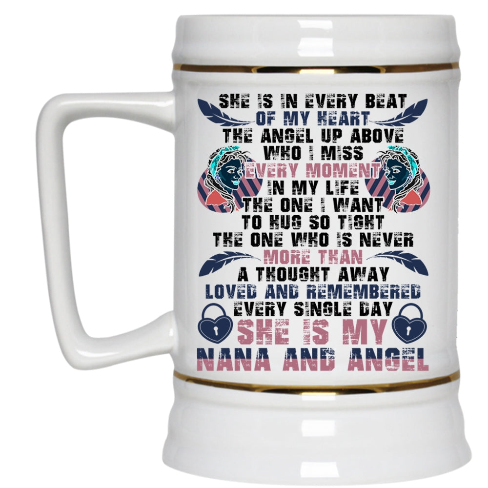 She Is My Nana And Angel Beer Stein 22oz, She Is In Every Beat Of My Heart Beer Mug