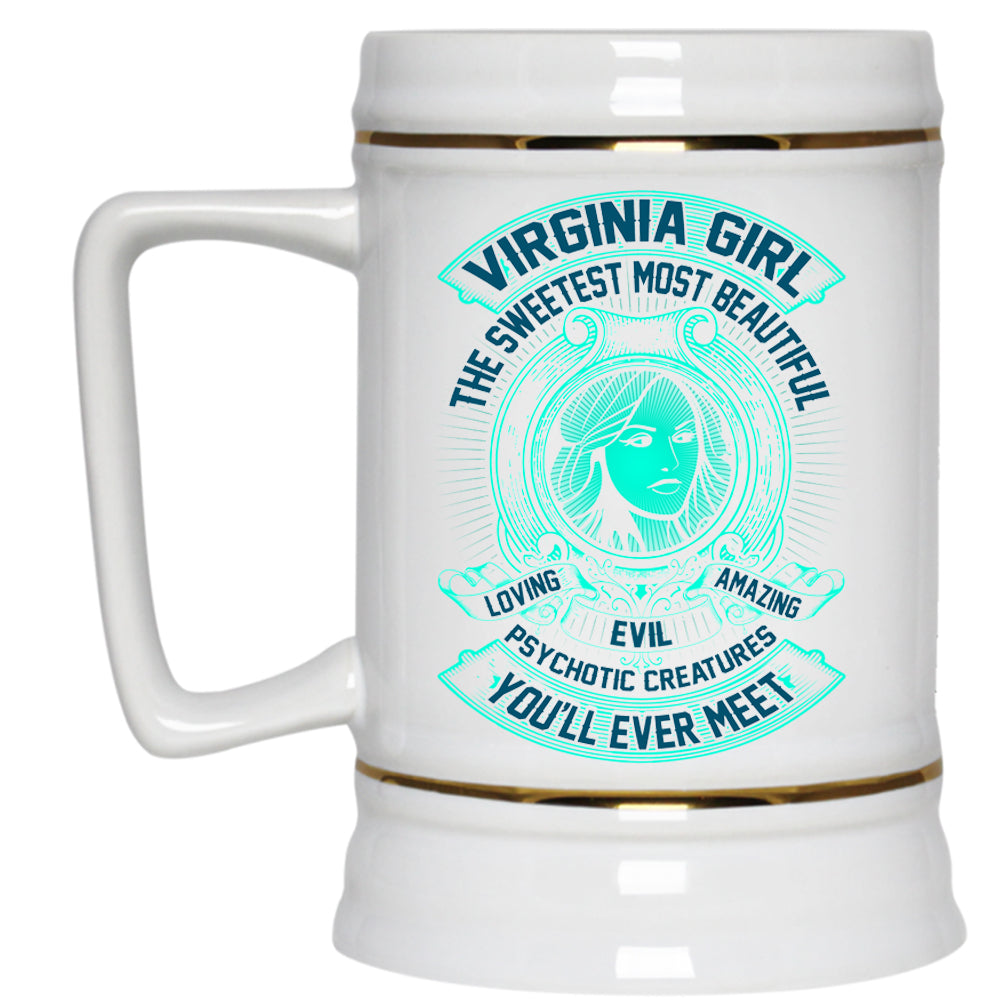 The Sweetest Most Beautiful Loving Girl Beer Stein 22oz, Virginia Girl Beer Mug