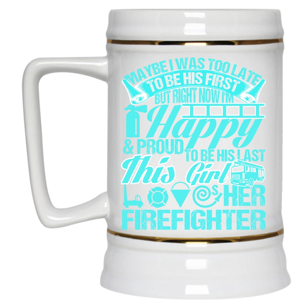 This Girl Loves Her Firefighter Beer Stein 22oz, May Be I Was Too Late To Be His First Beer Mug