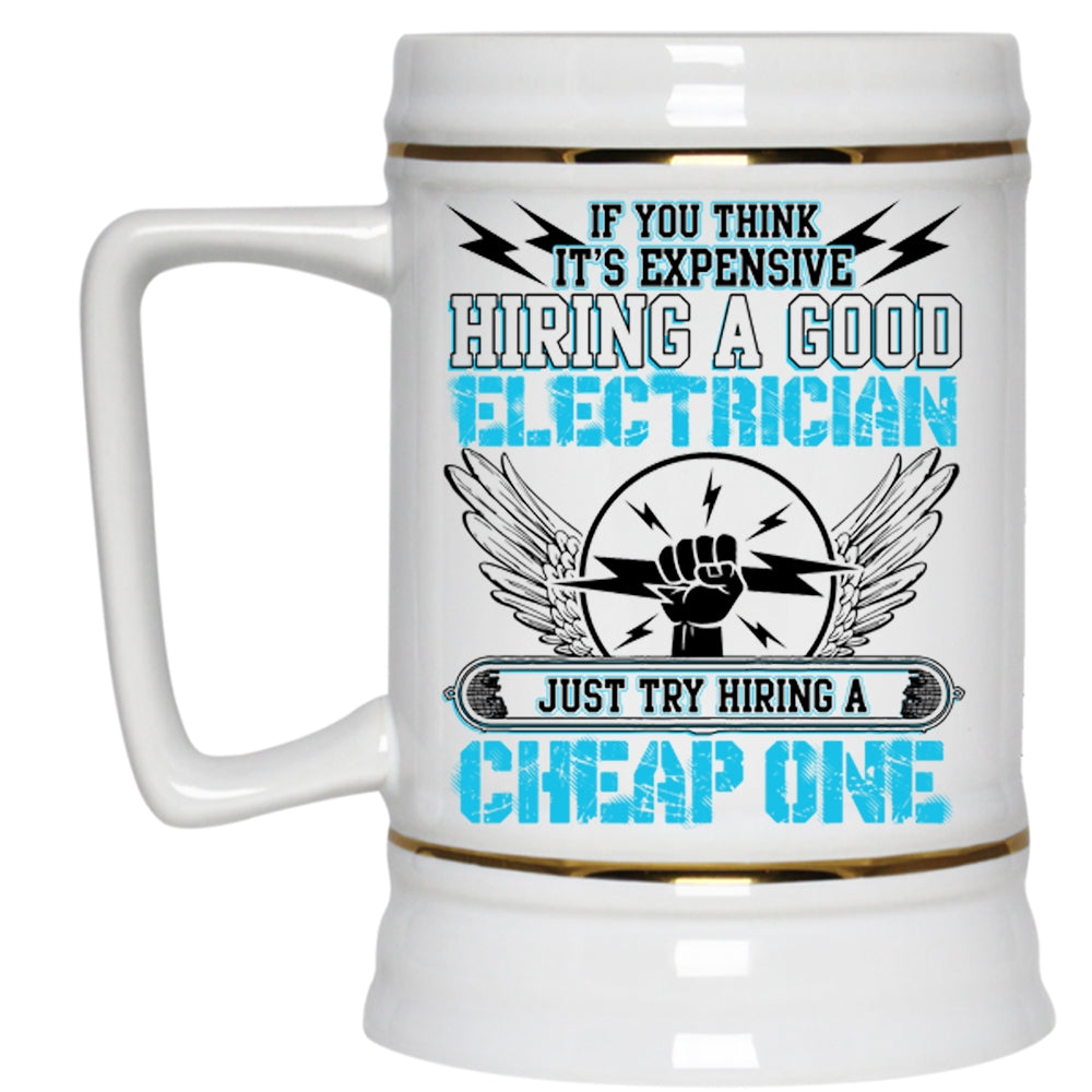 Try Hiring A Cheap One Beer Stein 22oz, It's Expensive Hiring A Good Electrician Beer Mug