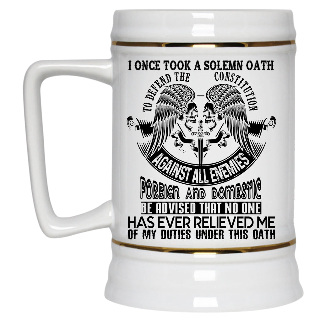 Veteran Beer Stein 22oz, I Once Took A Solmn Oath To Defend Beer Mug