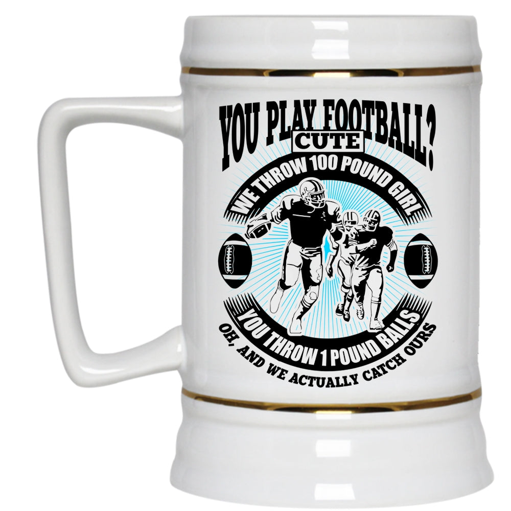 We Throw 100 Pound Girl Beer Stein 22oz, You Play Football Beer Mug