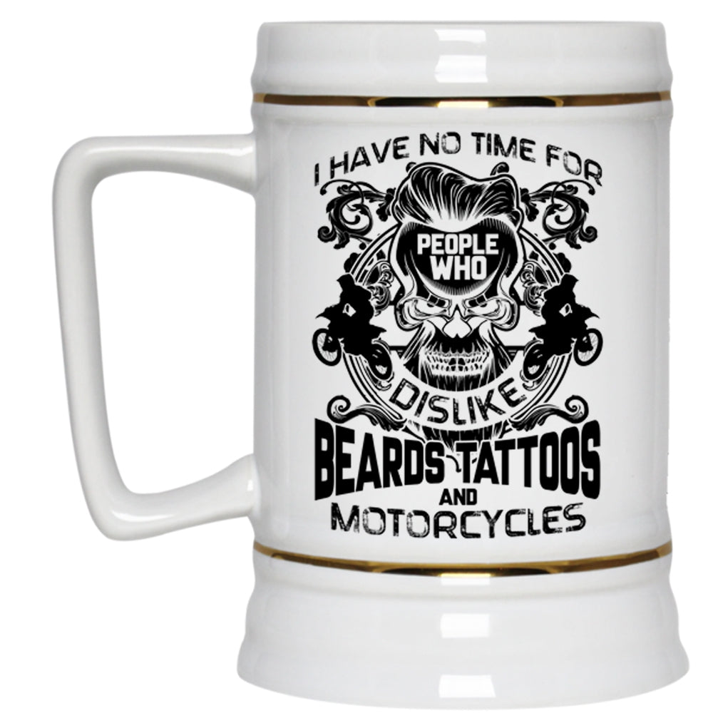 Who Dislike Beards Tattoos And Motorcycles Beer Stein 22oz, I Have No Time For People Beer Mug