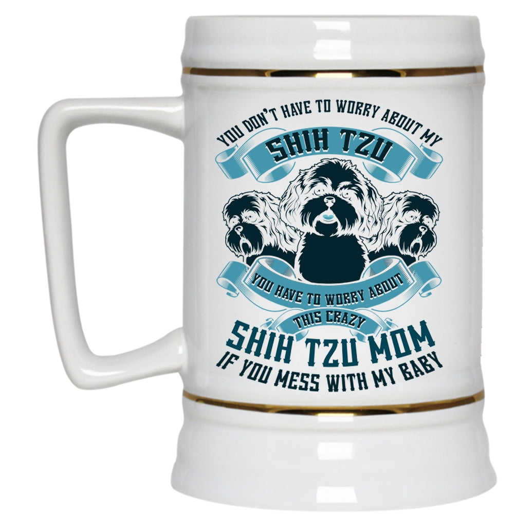 Worry About This Crazy Shih Tzu Mom Beer Stein 22oz, You Don't Have To Worry About My Shih Tzu Beer Mug