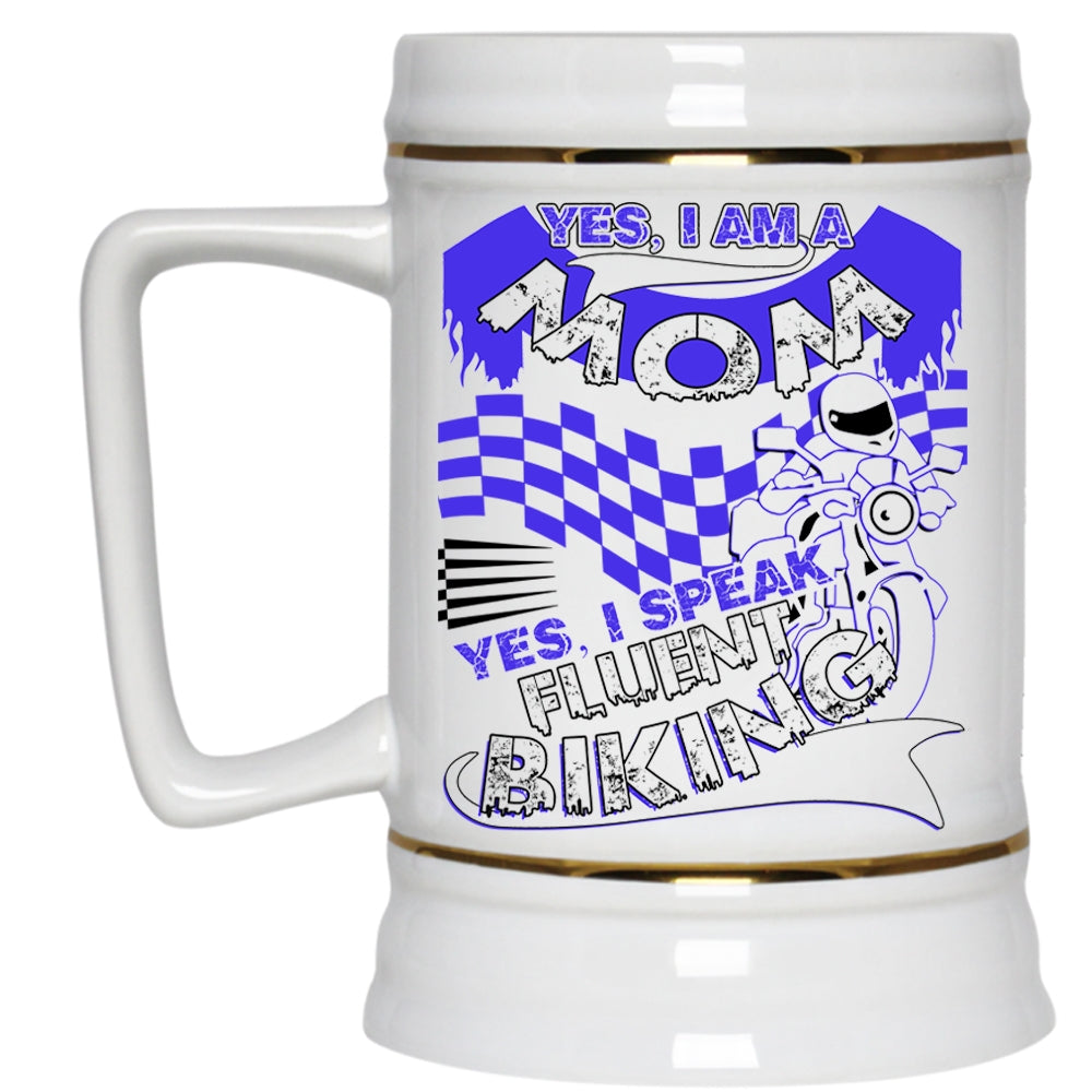 Yes I Speak Fluent Biking Beer Stein 22oz, I Am A Mom Beer Mug