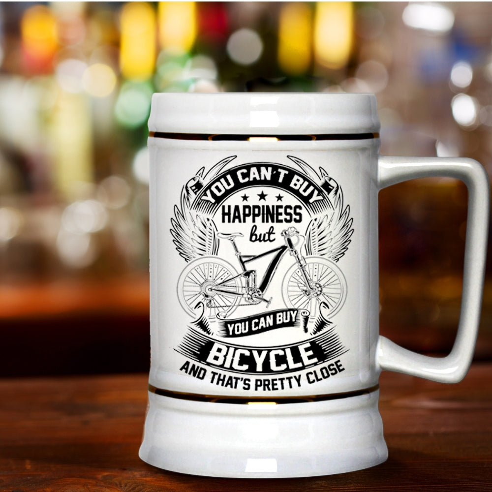 You Can Buy Bicycle Beer Stein 22oz, You can't Buy Happiness Beer Mug