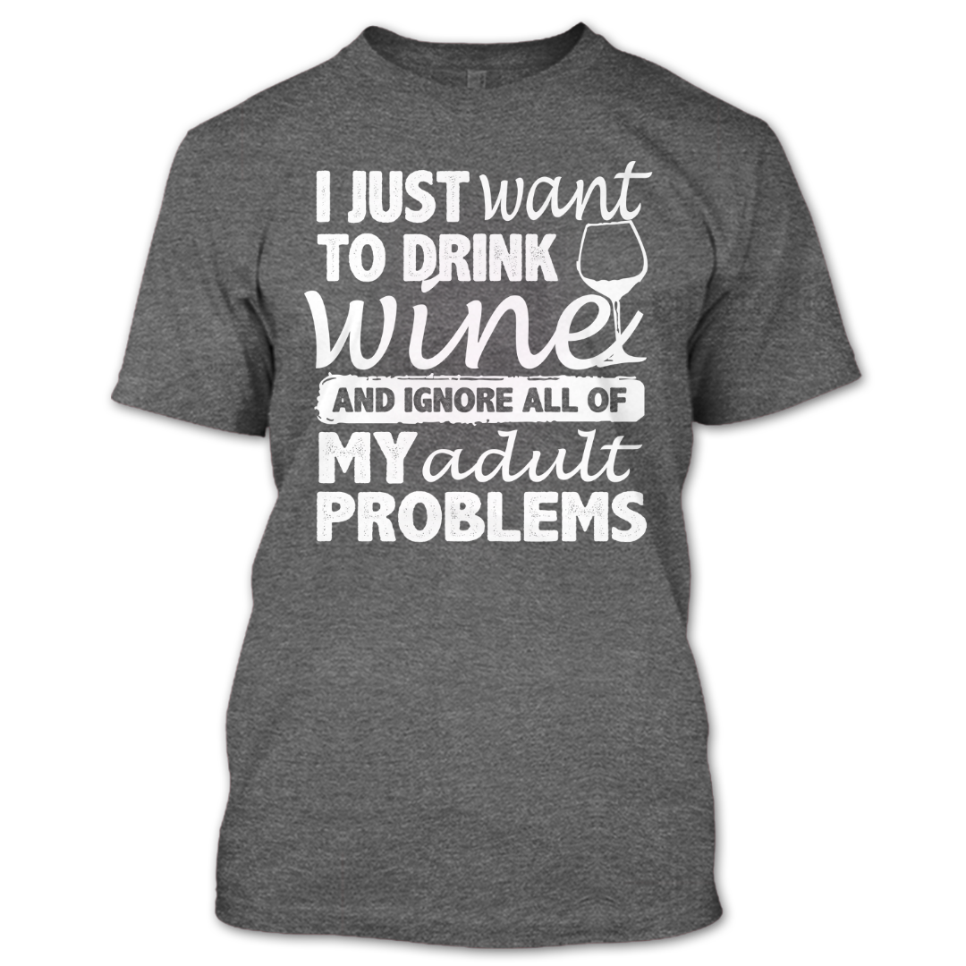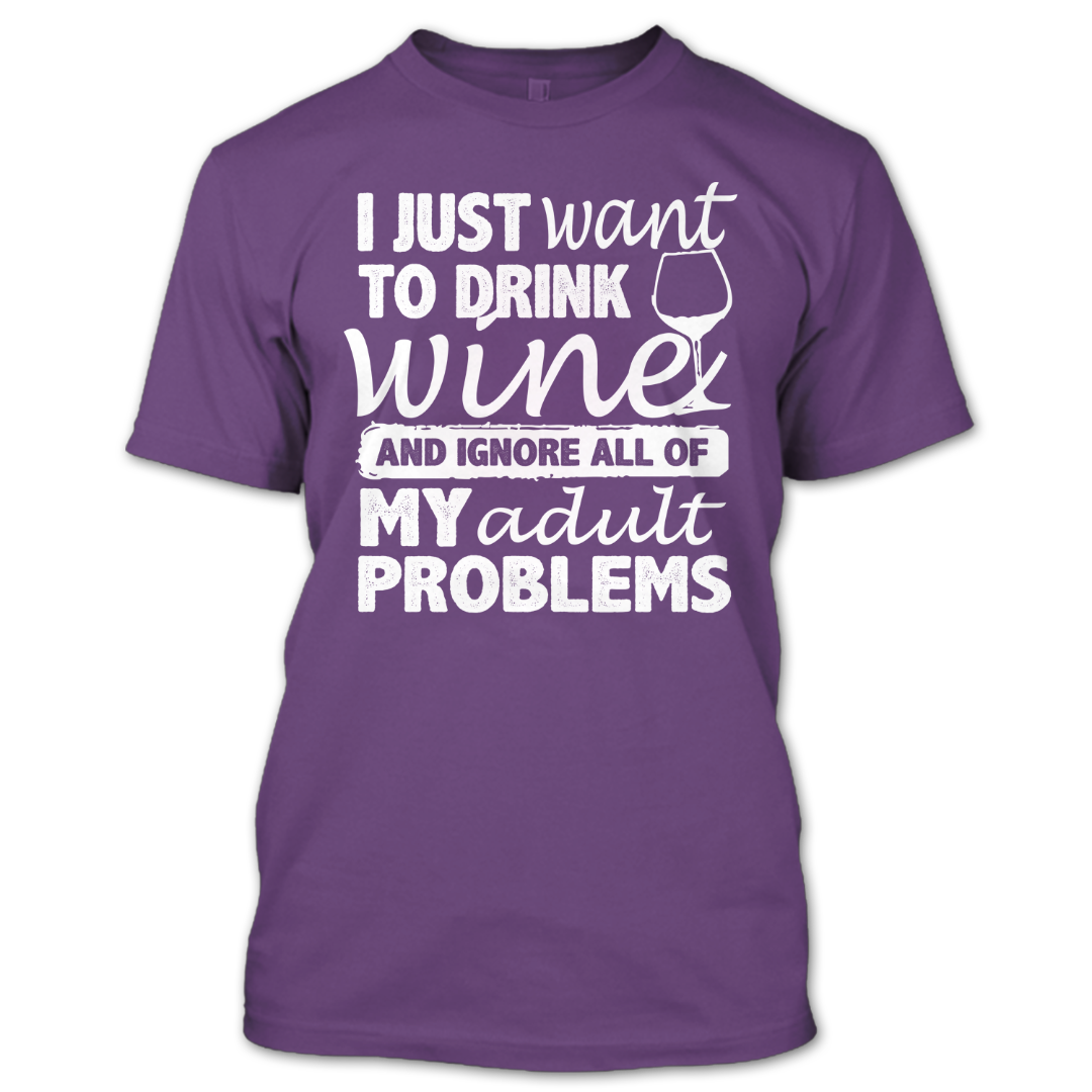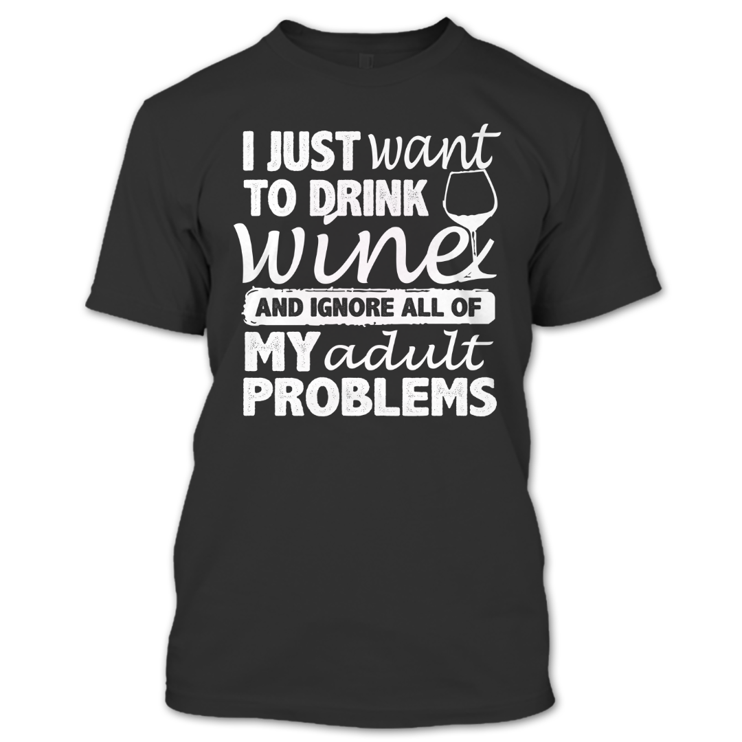 I Just Want To Drink Wine And Ignore All My Adult Problems T Shirt, Wine Lovers Shirt, Hobby Shirts