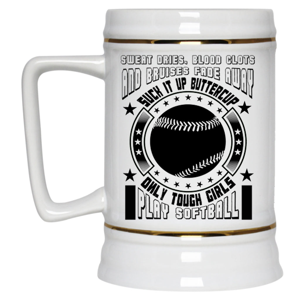 Awesome Girls Beer Stein 22oz, Only Touch Girls Play Softball Beer Mug