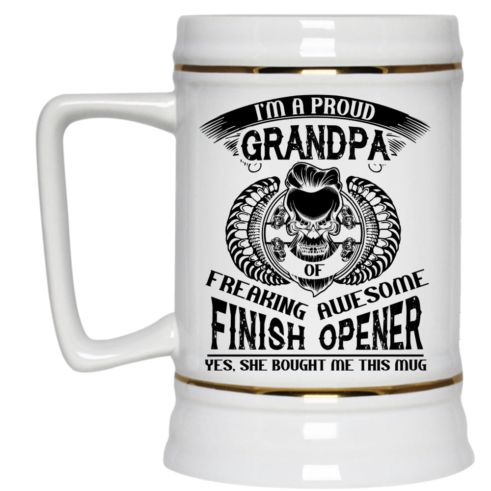 Awesome Grandpa Beer Stein 22oz, I'm A Proud Grandpa Of Finish Opener Beer Mug