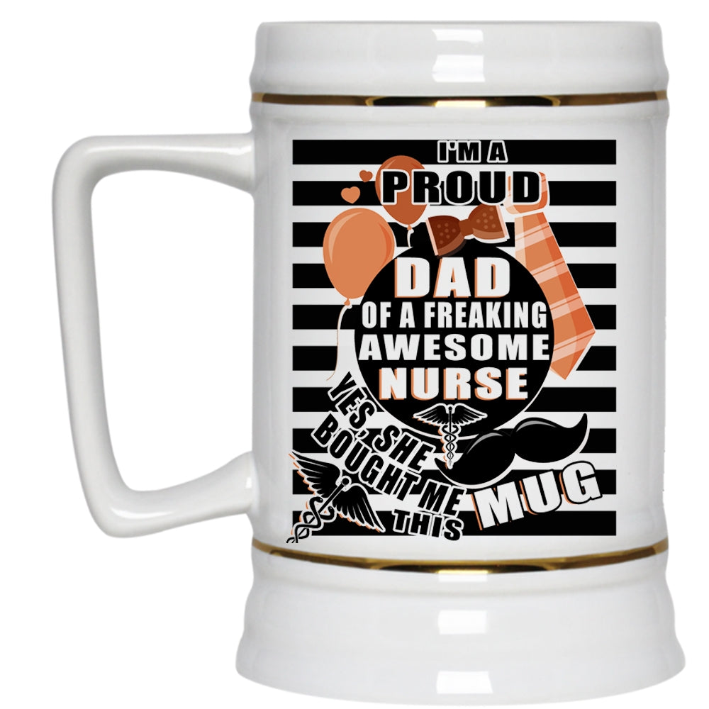 Awesome Nurse's Dad Beer Stein 22oz, I'm A Proud Dad Of A Nurse Beer Mug