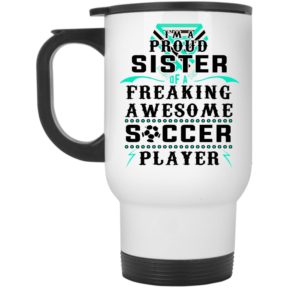 Awesome Sister Travel Mug, I'm A Proud Sister Of A Soccer Player Mug