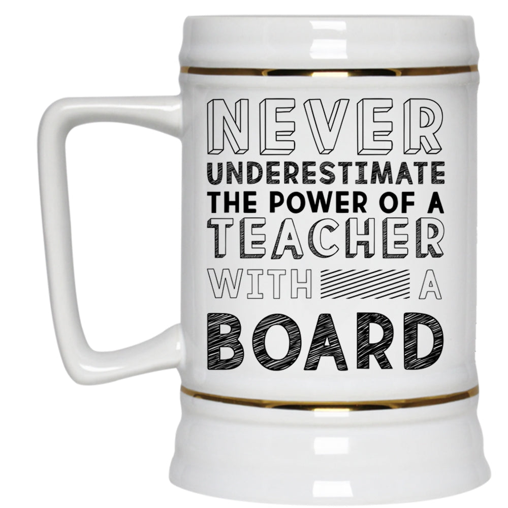Awesome Teacher Beer Stein 22oz, The Power Of A Teacher With A Board Beer Mug