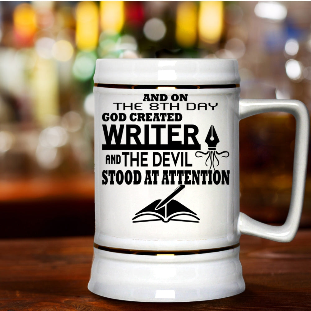Awesome Writer Beer Stein 22oz, On 8th Day God Created Writer Beer Mug
