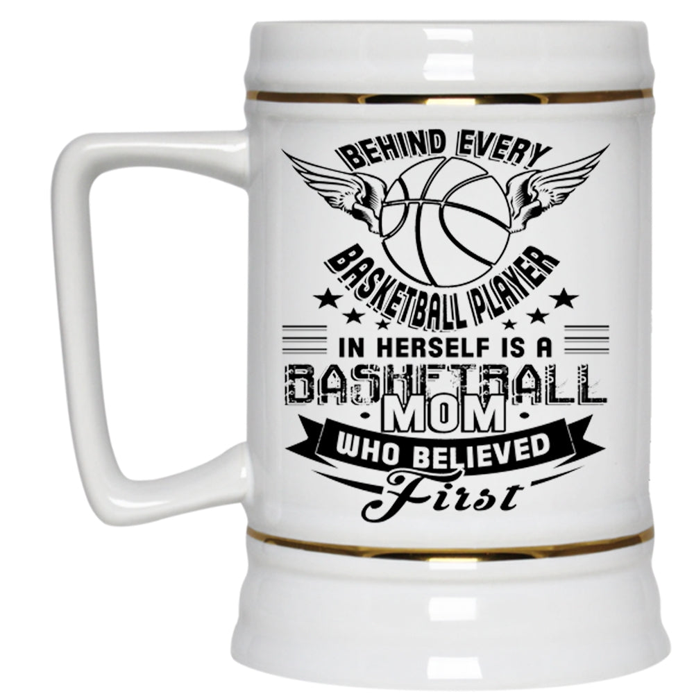 Basketball Mom Beer Stein 22oz, Behind Every Basketball Player In Herself Beer Mug
