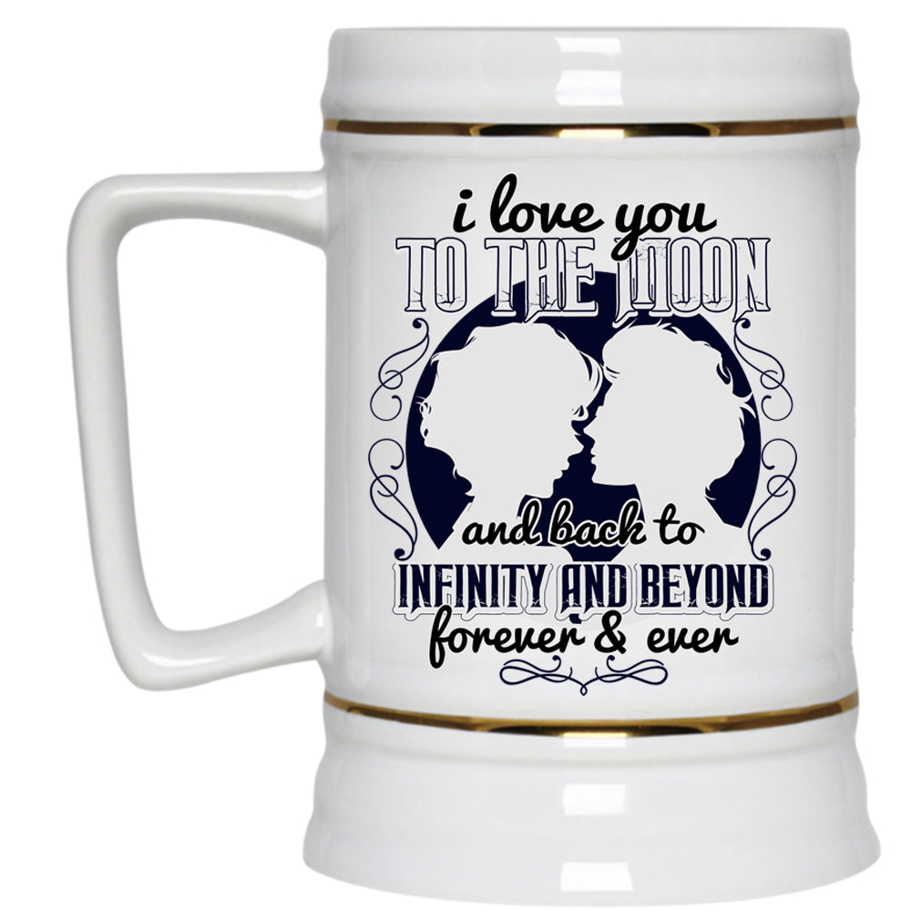 Cool Couple Beer Stein 22oz, I Love You To The Moon And Back Beer Mug