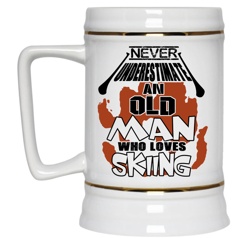 Cool Dad Beer Stein 22oz, Never Underestimate An Old Man Loves Skiing Beer Mug