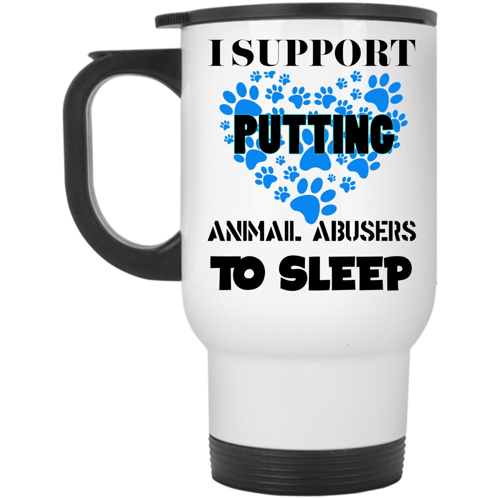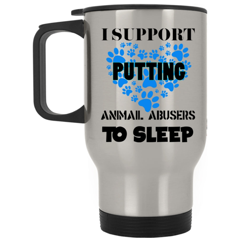 Cool Dogs Travel Mug, I Support Putting Animal Abbusers To Sleep Mug