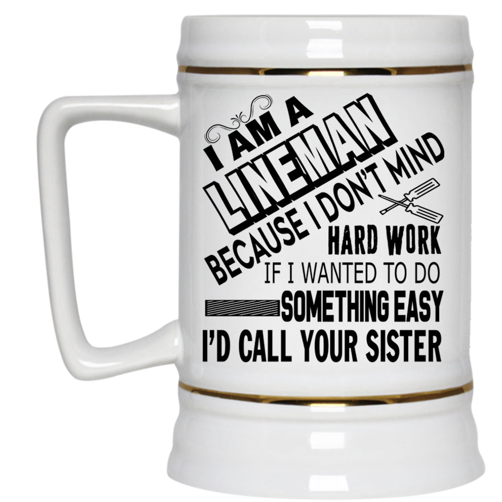 Cool Gift For Lineman Beer Stein 22oz, I Am A Lineman Beer Mug