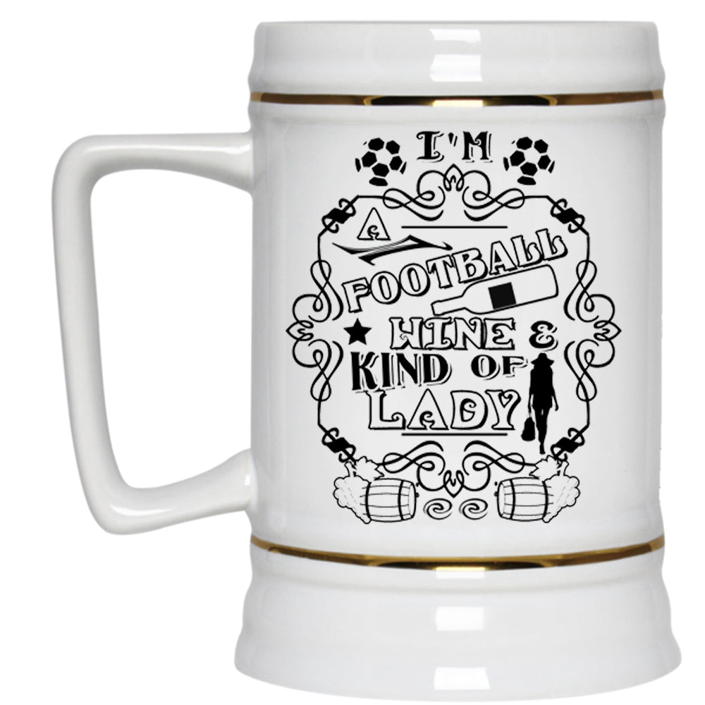 Cool Lady Beer Stein 22oz, I'm A Football Mine And Kind Of Lady Beer Mug