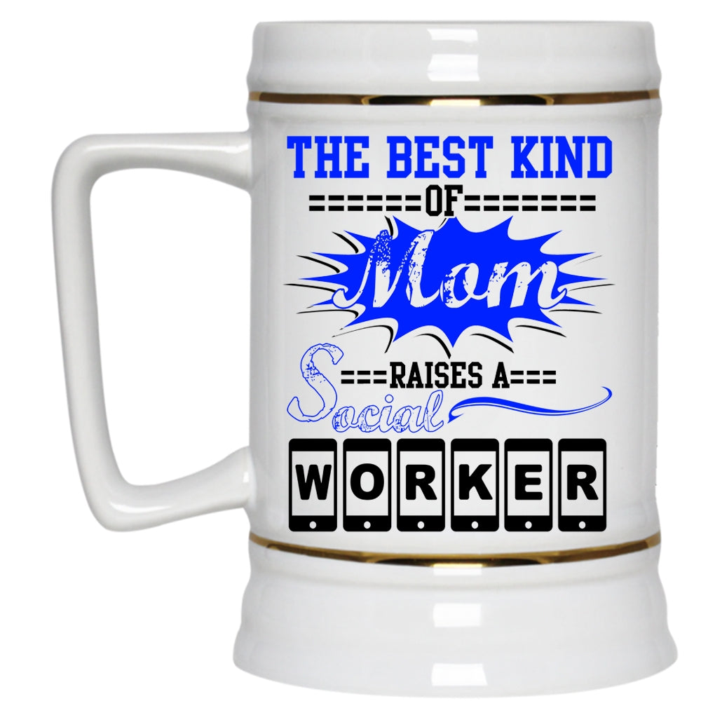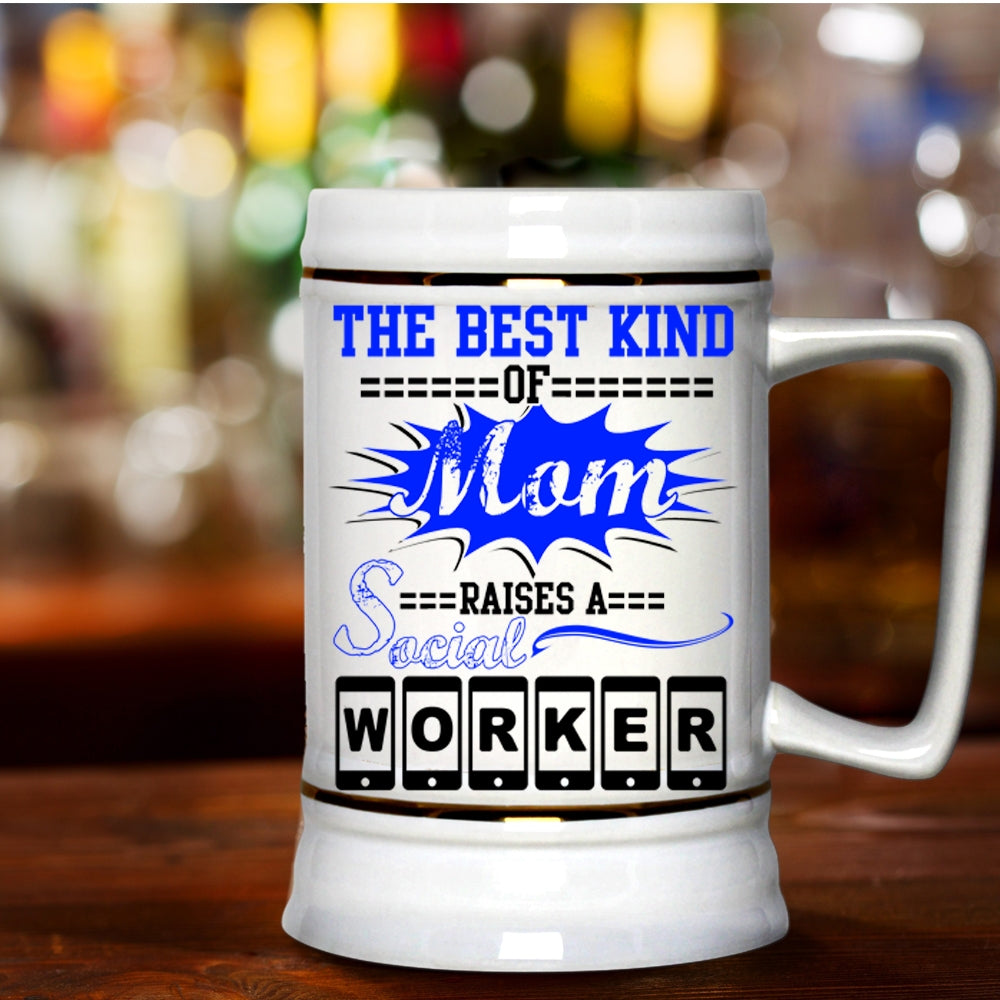Cool Machisnist Beer Stein 22oz, The Best Kind Of Mom Raises A Social Worker Beer Mug