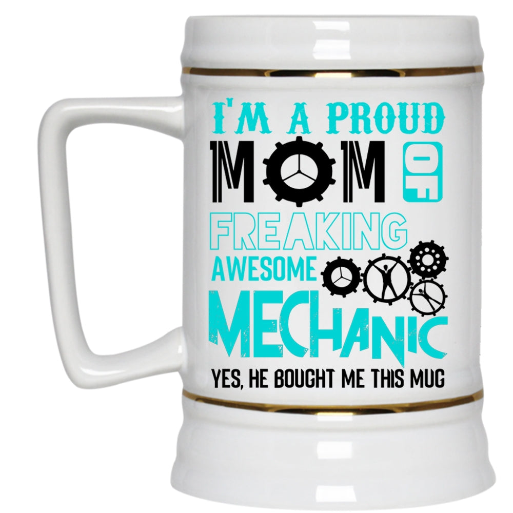 Cool Mom Beer Stein 22oz, I'm A Proud Mom Of Awesome Mechanic Beer Mug