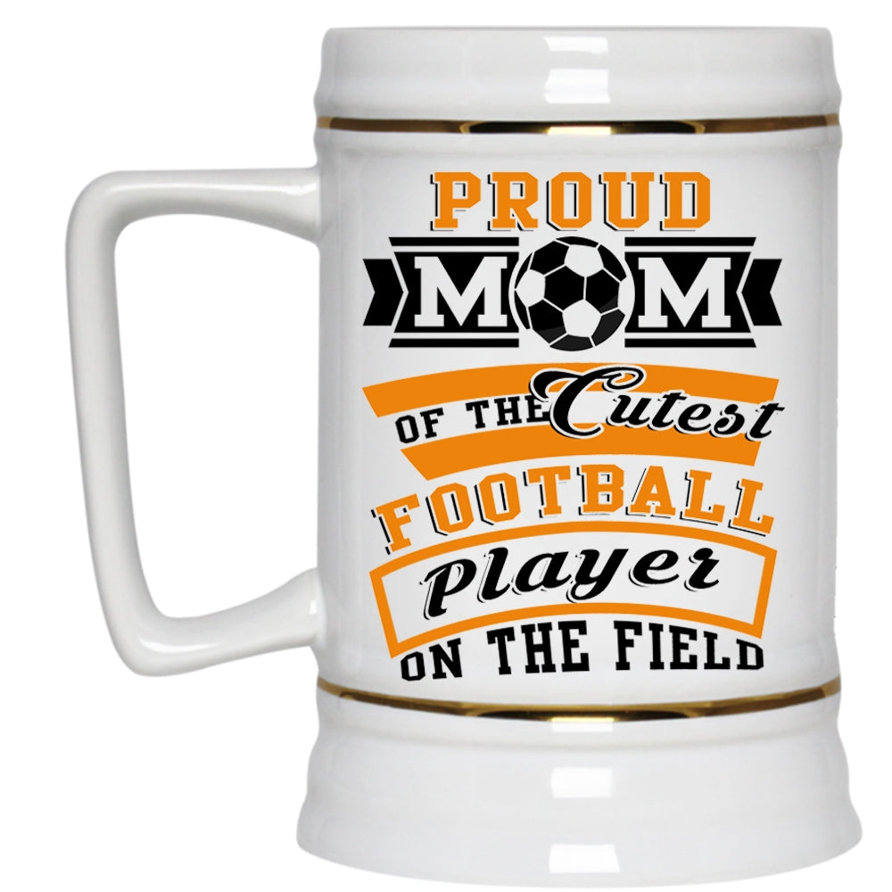 Cool Mom Beer Stein 22oz, Proud Mom Of The Cutest Football Player Beer Mug